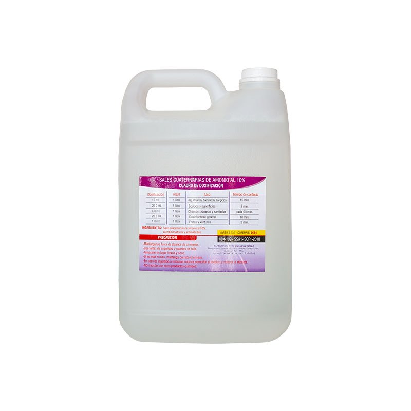 ES UN PRODUCTO DESINFECTANTE Y BACTERICIDA DE AMPLIO ESPECTRO LIQUIDO A BASE DE SALES CUATERNARIAS DE AMONIO, BIODEGRADABLE Y SOLUBLE EN AGUA.